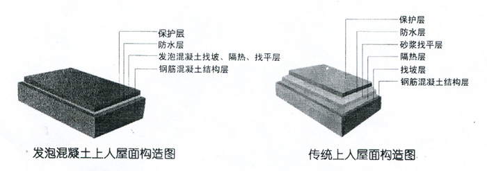 一:工藝比較:珍珠巖屋面保溫一般包括:結(jié)構(gòu)層,水泥珍珠巖找坡層,珍珠巖塊保溫層,砂漿找平層和防水層。泡沫混凝土應(yīng)用于屋面保溫是采用現(xiàn)場澆注施工方法,將保溫層、找坡層、找平層三為一的一種屋面保溫工程,比傳統(tǒng)保溫方法簡便,從而大大地縮短工期。見下圖例: