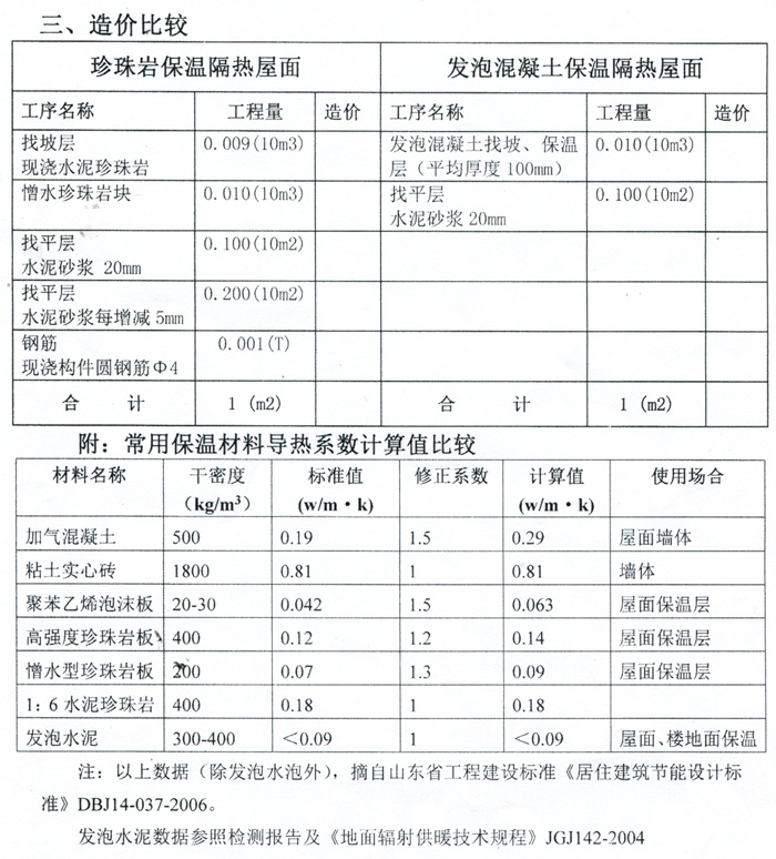 2, 隔熱性比較:珍珠巖(修正后)0.09w/m.k發(fā)泡混凝土為:008-0.135w/(m.k)